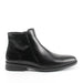 Esta bota de tobillo para caballero ofrece una estética pulida y minimalista con detalles sutiles que elevan su diseño. Fabricada en piel negra de acabado brillante, presenta punta ligeramente afilada y costuras discretas que realzan su silueta estilizada. La suela con tacón bajo y ranuras horizontales proporciona tracción y comodidad, mientras que las perforaciones decorativas cerca del talón añaden un toque de distinción. Ideal para atuendos formales o urbanos con carácter sobrio y elegante.