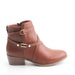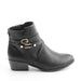 Botín de textura tipo piel con diseño moderno y detalles metálicos que elevan su estilo. Cuenta con tacón bajo tipo bloque y punta redondeada que brindan comodidad y estabilidad, ideal para uso diario. Su correa decorativa con hebilla y aplicaciones metálicas en el tobillo aportan un toque sofisticado, mientras que el cierre lateral facilita el calce. Perfecto para complementar atuendos casuales o semi-formales con elegancia discreta.
