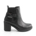 Botín negro de acabado liso con diseño moderno y versátil, ideal para elevar cualquier look casual o semi-formal. Su tacón alto y grueso brinda estabilidad y estilo, mientras que la suela texturizada mejora el agarre en distintas superficies. El detalle de correa lateral con hebilla metálica dorada y el tirador trasero aportan funcionalidad y un toque sofisticado. Perfecto para quienes buscan comodidad sin renunciar a una estética elegante y urbana.