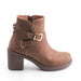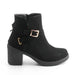 Bota tipo botín con acabado tipo gamuza, ideal para climas frescos y estilos sofisticados. Su tacón alto y grueso brinda estabilidad, mientras que la suela de goma texturizada mejora el agarre. El diseño se realza con una correa decorativa y hebilla dorada en el lateral, además de un detalle metálico cerca del talón que aporta un toque moderno. El cierre lateral permite un calce fácil. Perfecta para looks casuales, urbanos o semi-formales con un giro elegante.
