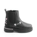 Botín negro infantil con detalles divertidos que lo hacen único. Su diseño incluye cierre lateral y panel elástico para un calce cómodo, además de una suela gruesa con franja decorativa plateada que aporta contraste. En la parte trasera, bordados temáticos de gatito y huellitas junto a la palabra Cute añaden un toque lúdico ideal para quienes buscan calzado funcional con personalidad. Perfecto para looks casuales con un giro creativo.