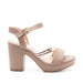 Esta elegante plataforma y bloque ancho combina sofisticación y comodidad, ideal para eventos formales o salidas nocturnas. Su diseño moderno destaca por las delicadas tiras tipo metálicas en tono oro rosado, una de ellas con un sutil detalle decorativo que añade un toque de glamour. El ajuste seguro mediante correa al tobillo con hebilla dorada garantiza estabilidad al caminar, mientras que la altura estiliza la figura sin sacrificar confort.